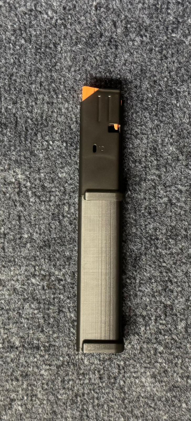 Die Griffverlängerung gibt einem AR9 Typ Colt SMG 10-Schuss Magazine von Duramag die Optik eines original 32-Schuss Magazines, ohne die Magazinkapazität zu erhöhen oder zu verringern. Damit ist es vorallem praktisch für dynamische Disziplinen, wo ein schneller und sichere Griff des Magazines für den Magazinwechsel essenziell für den Erfolg ist.