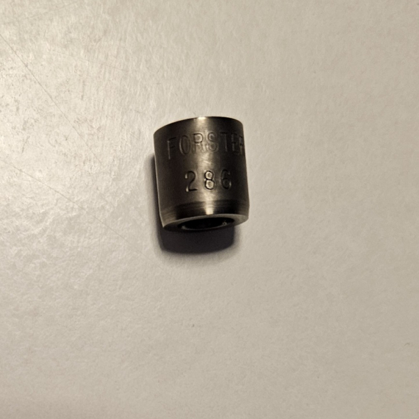 Ich biete hier ein neues Bushing in der Größe .286 für Forster Matrizen zum Verkauf an. Ich hatte mir eine Auswahl neuer Bushings in verschiedenen Größen bestellt und letztlich eine andere Größe gewählt. Somit ist der Artikel neu und unbebutzt geblieben.