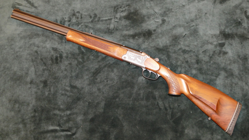 Blaser BBF95 Luxus, Kal. 6,5x65(R) und 20/76. Einschloß-Handspann-System. Der Auszieher des Kugellaufes wurde nachträglich auf die Verwendung von randlosen Patronen erweitert und die Waffe auf die gasdruckstärkere 6,5x65 neu beschossen (es können also wahlweise 6,5x65 mit UND ohne Rand aus der Waffe verschossen werden, die obere Einfräsung am Schrotauszieher stammt von einem K&S Einstecklauf, der dort mal montiert war, leider nicht mehr vorhanden), Erst-Beschuß 1995, Nachbeschuß 2015. Guter Zustand mit leichten Gebrauchsspuren. Der Schaft hat ein paar Kratzer und Druckstellen die sich ggf. recht leicht überarbeiten lassen. Die Metallteile haben nur sehr geringe Gebrauchsspuren. Schußleistung sehr gut, siehe Bild: 5 Schuß mit RWS 8,2g KS (randlos) auf 100m. Läufe innen blank, Lauflänge 60cm, Schaftlänge 37cm, Gesamtlänge 103cm. Hinterschaft mit bayerischer Backe, Seitenplatten mit Rotwild- und Fuchsmotiv
