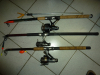 3 x Angelruten mit Rolle, Schnur und 1 x Auflagestab.