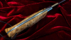 Bereits auf den ersten Blick beeindruckt der Griff aus wunderschön gemasertem Pappelholz. Die lebendige, nahezu dreidimensional wirkende Maserung verleiht diesem Messer eine unverwechselbare Ästhetik. Jede Struktur, jede Zeichnung ist naturgewachsen – kein Stück gleicht dem anderen. In Kombination mit den sauber gesetzten Nieten und der harmonisch ausgearbeiteten Zwinge entsteht ein stimmiges Gesamtbild von hoher handwerklicher Qualität.
