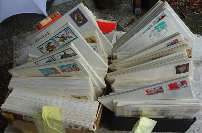 Lieferumfang siehe Fotos aus 2 Perspektiven. Ca. 850 Stück, in den Kuverts sind teilweise noch weitere Briefmarken. Ungesichtet, Angebot wie abgebildet. Durch Ihr Gebot erkennen Sie an, dass es sich um eine Privatauktion ohne Rücknahme handelt. Haftung für Verlust bzw. Beschädigung der Sendung, die über das Maß der Haftung des Zustelldienstleisters hinausgehen, übernehme ich nicht. Zahlung innerhalb von 1 Woche. Versand 7,-€ versichert, nicht verhandelbar. Viel Glück beim Bieten!