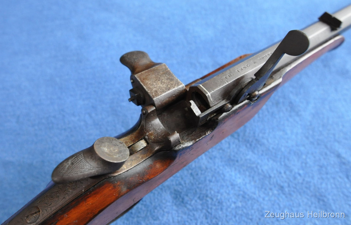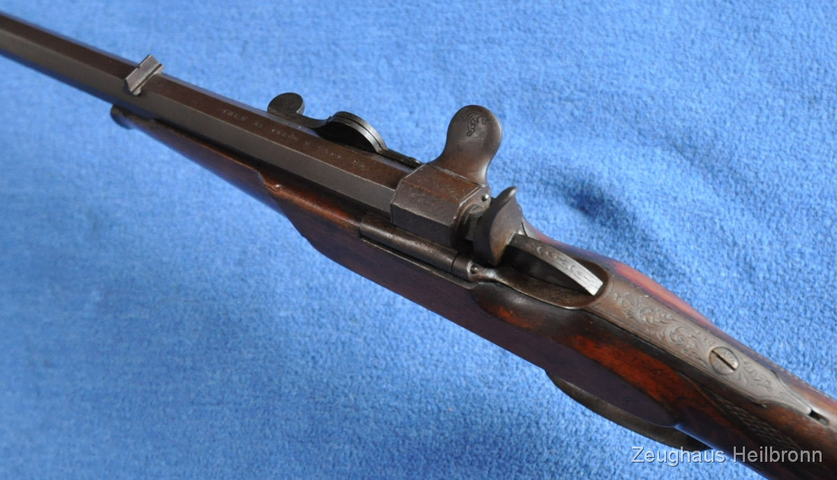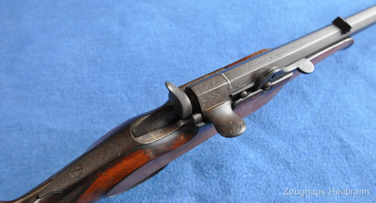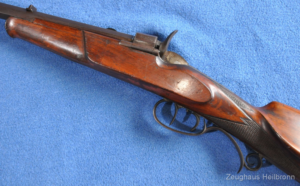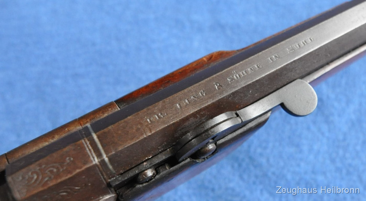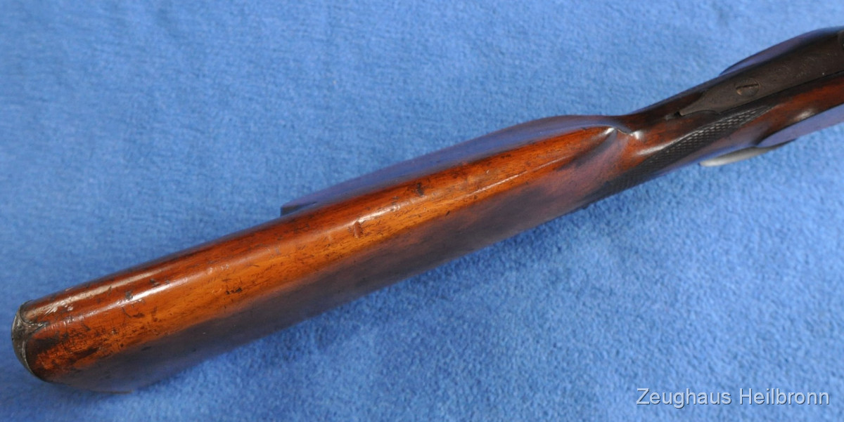 Waffe in einem gebrauchten Zustand, Lauf blank. Jung & Söhne war ein bekannter Jagdwaffenhersteller in Suhl. Selten !