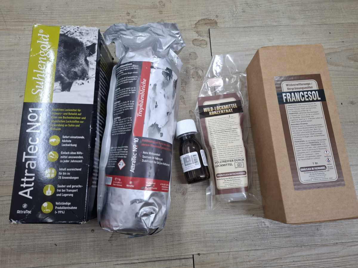 großes Paket mit Wildlockmittel Konvolut Attratec Konzentrat Trophäenbleich Wildvergrämung etc