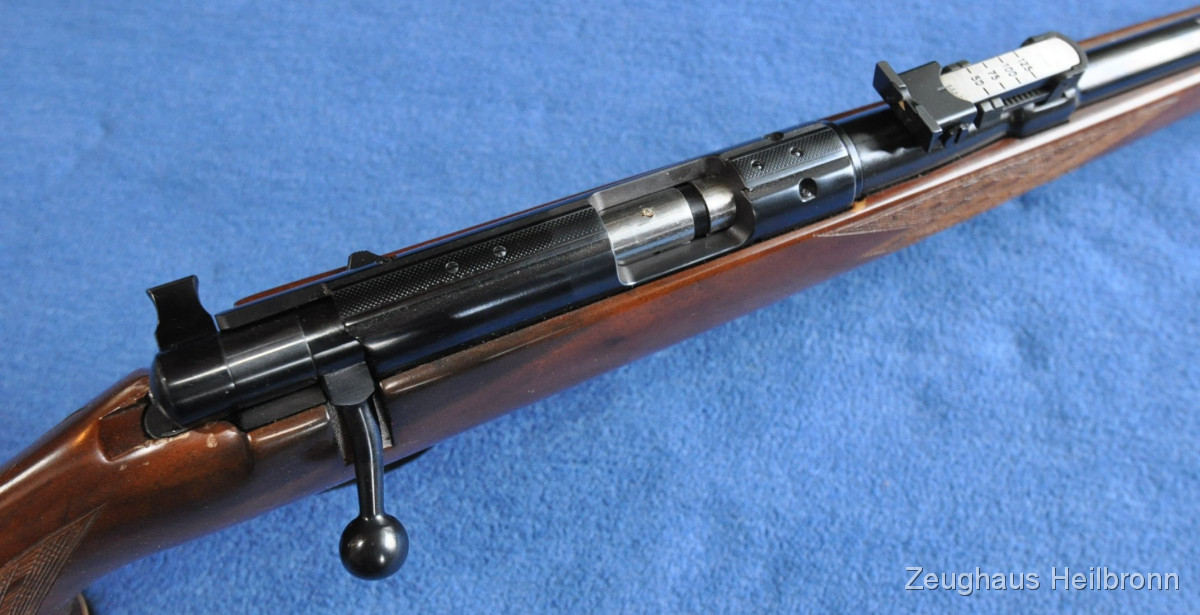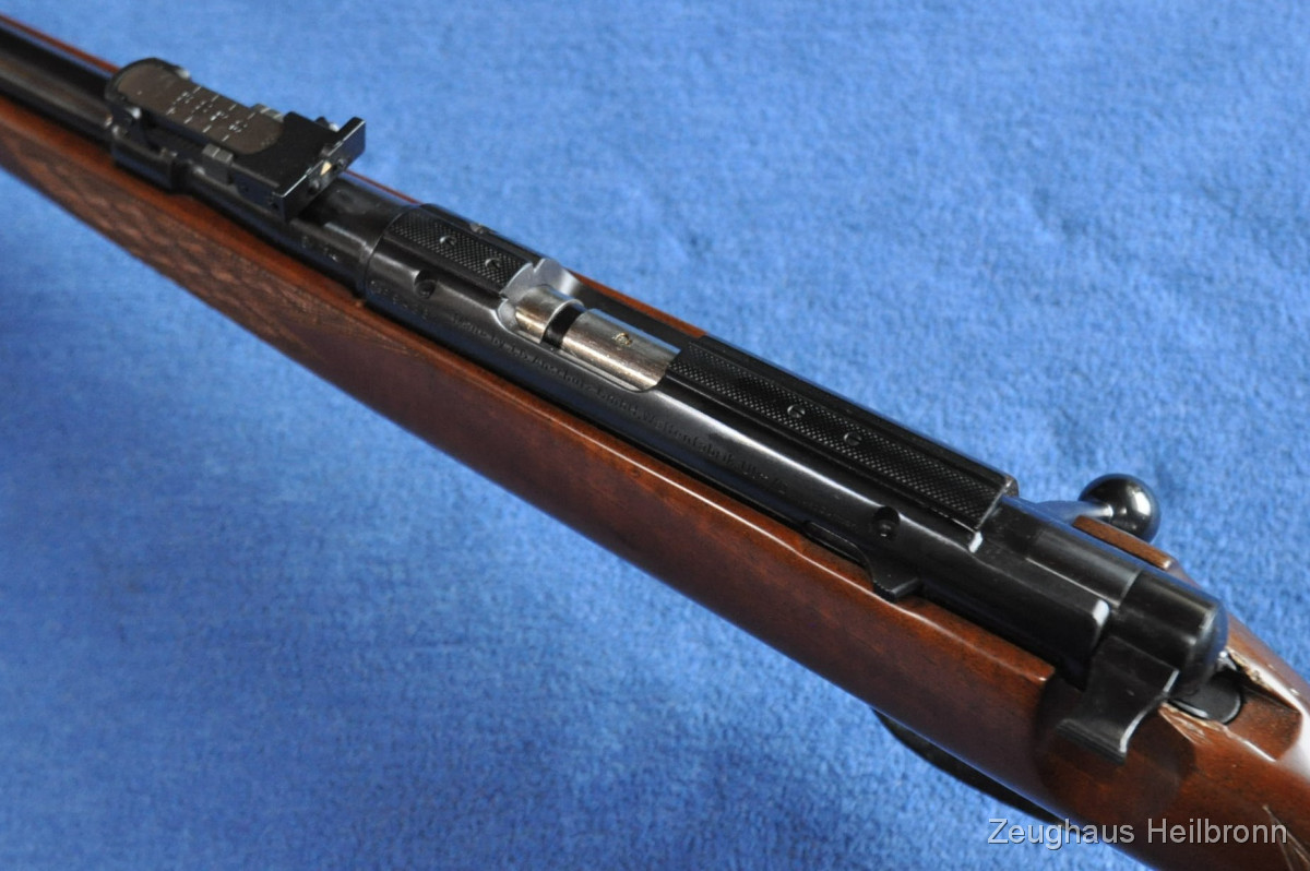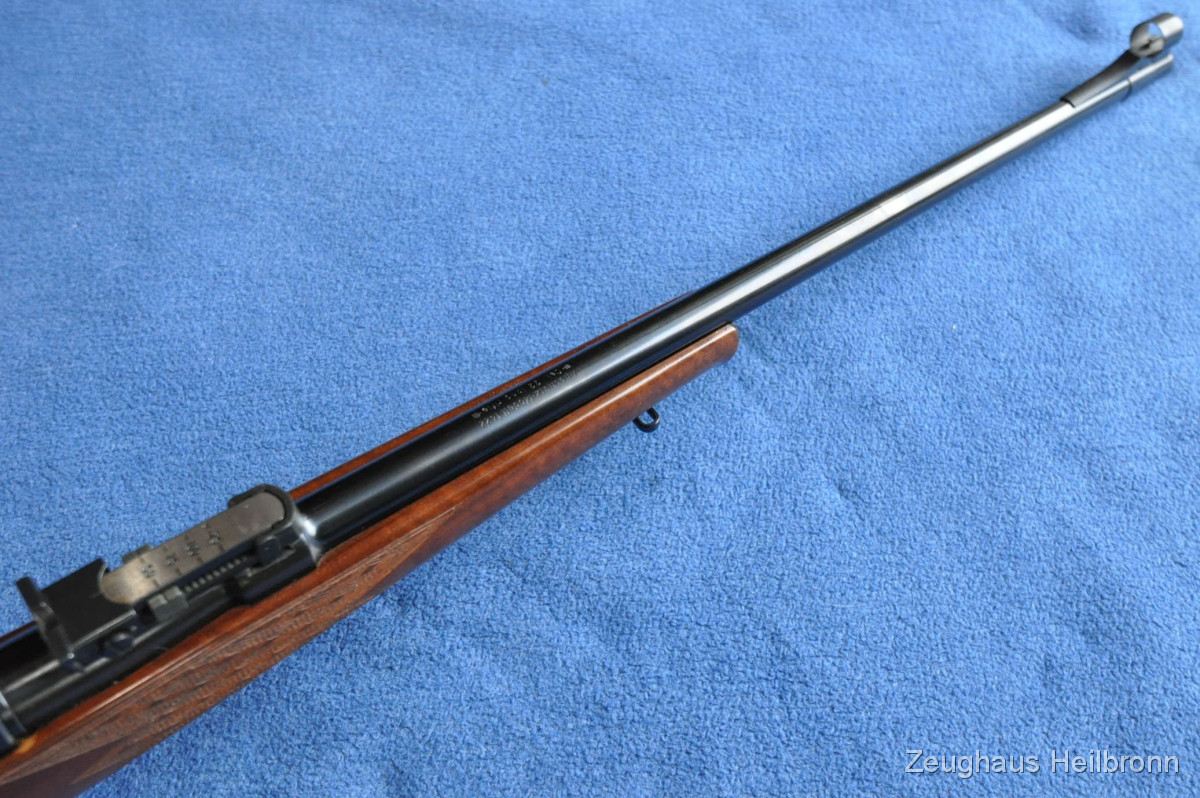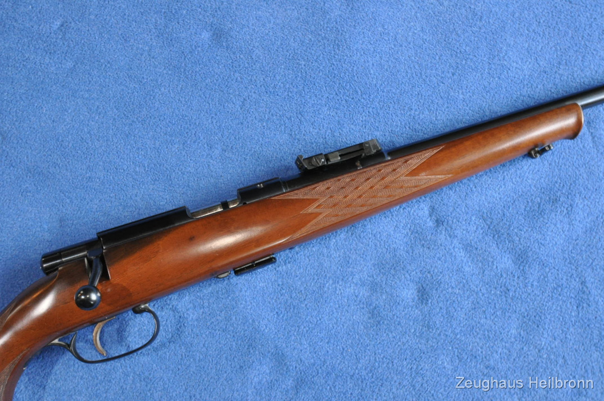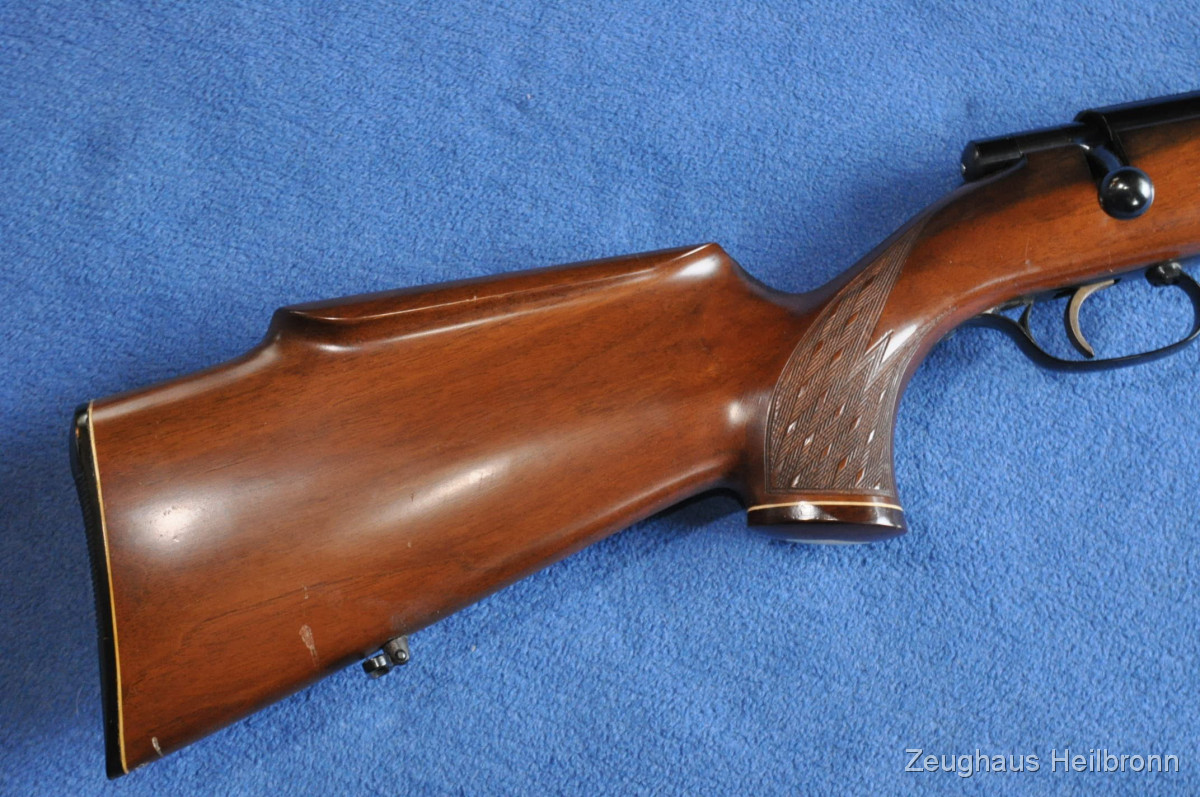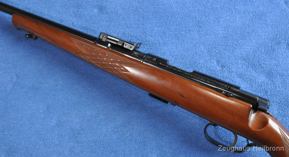 Waffe in einem sehr schönen Zustand, volle Funktion, Lauf blank. Hochwertige Ausführung, so heute für ein KK Gewehr nicht mehr bezahlbar, jagdlicher Schaft mit Backe, Verstellbares Visier, Prismenschiene für ZF.