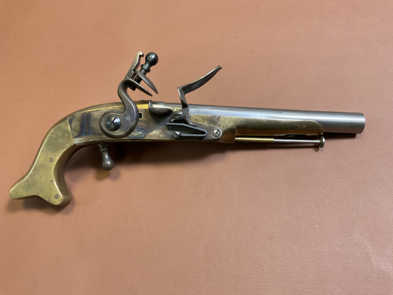 Zum Verkauf steht eine Steinschlosspistole der Firma San Marco im Kaliber .58 Black Powder mit der Seriennummer 24822. Die Waffe ist in einen Messinggriff eingearbeitet und verfügt über eine Laderast, die sich auslösen lässt. Die Gesamtlänge beträgt 30 cm, die Lauflänge 17 cm. Italienischer Schwarzpulverbeschuss. Achtung: Verkauf nur an Personen, die das 18. Lebensjahr vollendet haben. Ein Altersnachweis ist erforderlich.