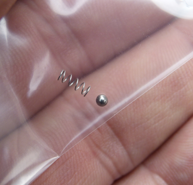 Achtung ! Seltene Originale Ersatzteile für den Noris Derringer bzw. Twi Nine mit PTB 276,550 und 599. Wer die Schraube am Sicherungsflügel mal raus geschraubt hat, kennt das Problem. Feder und Kugel sind verschwunden. Sie kaufen 1ne Kugel und 1ne Feder also ein SET.