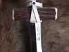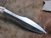 Der achteckige Eschenschaft hat einen leichten Konus über die gesamt Länge. Der Knebel ist aus echtem Hirschhorn. Die Wicklung ist aus zähem Sattelleder, befestigt mit handgeschmiedeten Pyramidenkopfnägeln. Der Schaft wurde dunkel gebeizt, ist sehr schön gemasert und wurde mehrfach geölt.