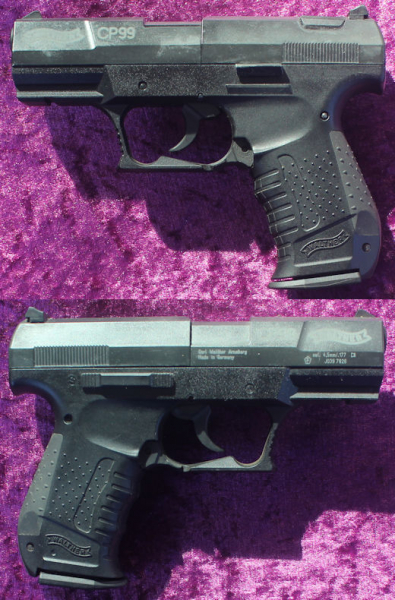 Eine gebrauchte CO2 Pistole von Walther Mod. CP 99 Kal. 4,5mm mit F im Fünfeck aus Nachlass . Das Bild zeigt den Artikel, so wie er in der Auktion angeboten wird. Der Artikel ist ungereinigt und ungeprüft und wird als Belegstück oder Ersatzteilträger angeboten. Privatverkauf ohne Garantie und Rücknahme. Bieten Sie nur, wenn Sie mit den in myGun angegebenen Bedingungen einverstanden sind. Bitte beachten Sie auch meine anderen Auktionen.