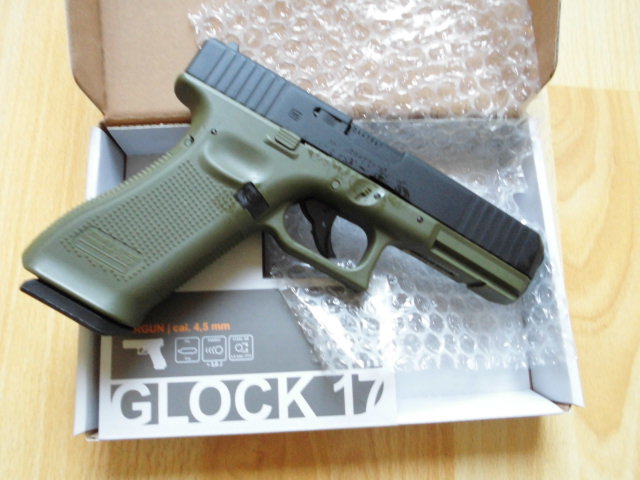 Hallo ich verkaufe hier eine Glock 17 Gen5 CO2 Blowback, cal. 4,5mm BB, Oliv.