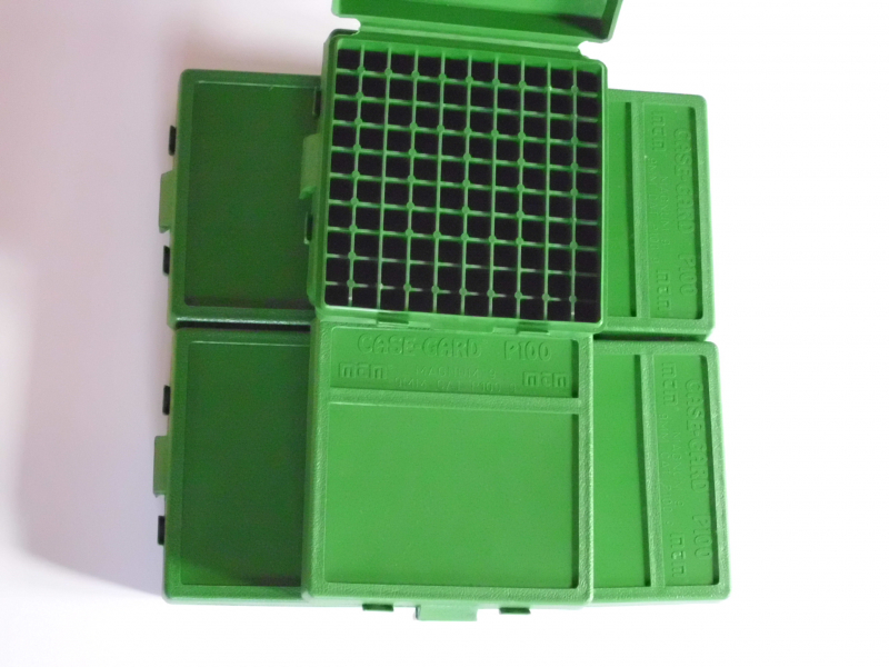 Sie bieten auf 7 Stück MTM Case-Gard Patronenboxen P100 für 9mm Luger.