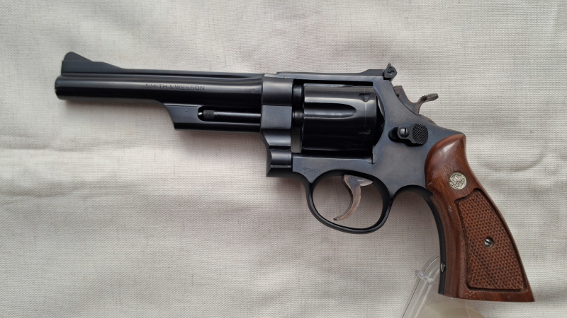 Biete einen Revolver S&W Mod. 28-2 Highway Patrolman – cal. .357 Magnum, N-Frame; 6 Zoll Lauflänge, deutscher Beschuß 1976.
