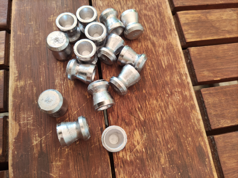 Die Geschosse sind mit einer MP kokile gegossen und haben ein Gewicht von circa 32 Gram. Die Form ist wie Lyman Sabot Slug. Die Geschosse werden mit einem Plastik Becher verladen!