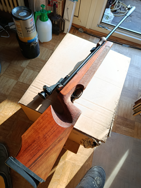 WALTHER LGR in sehr gutem Zustand Von BüMa überholt und neue Dichtungen eingebaut (läuft also noch etwas schwer). Der Knauf am Spannhebel war gebrochen, eine kleine Ecke fehlt und wurde von BüMa repariert. Alles in allem ein sehr gutes Matchgewehr quasi mit neuem TÜV und einer Macke am Knauf des Spannhebels. Brünierung 99,99%. Wem es nicht gefällt der muß ja nicht bieten.