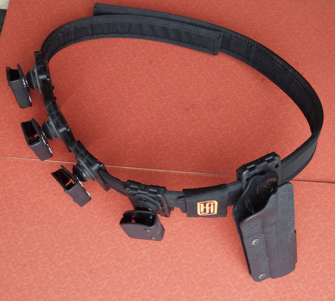 Ein Gürtel mit Klettverschluss, 100cm bis 130cm Umfang / mit 4 Kunststoff- Magazintaschen für einreihige Magazine / mit Pistolenholster für 1911-Modelle, Kunststoff / sehr neu, war nur im Waffenschrank gelagert / der Versand ins EU-Ausland kostet ca. 17,-€ /