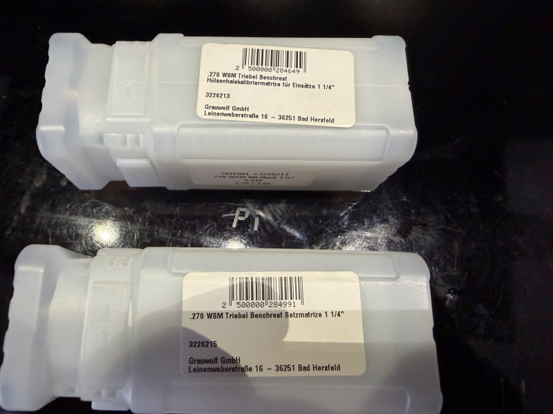 Zur Auktion steht ein High End Matrizensatz von Triebel im Kaliber .270WSM mit 3 Bushings