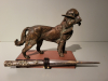 Antike Bronze Skulptur mit Brieföffner . Aus Volle Bronze Jagdhund auf Steinsockel , Brieföffner aus Bronze Griff mit Eichhörnchen Motiv . Klinge Messer aus Verchromte Messing und Hirschhorn Montierung . Griff mit kleine Dellen .
