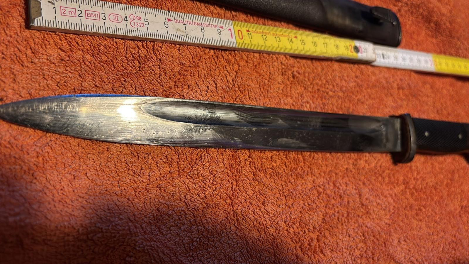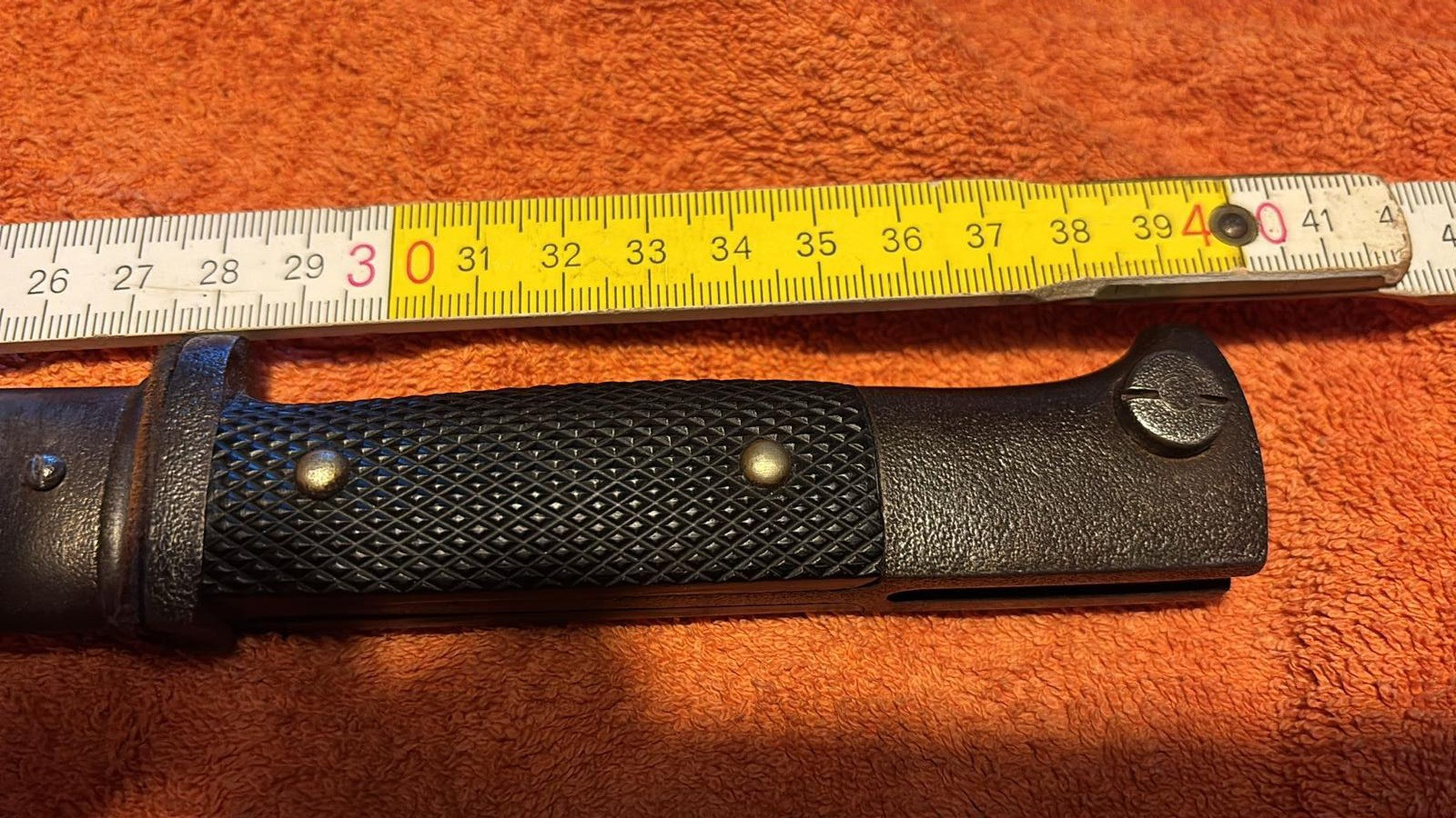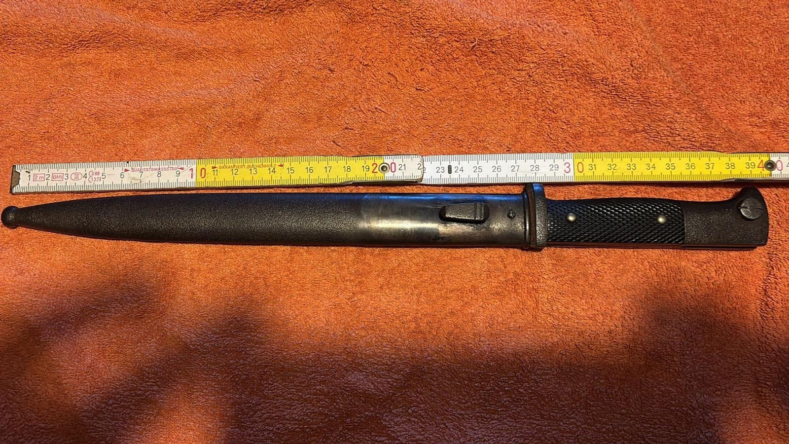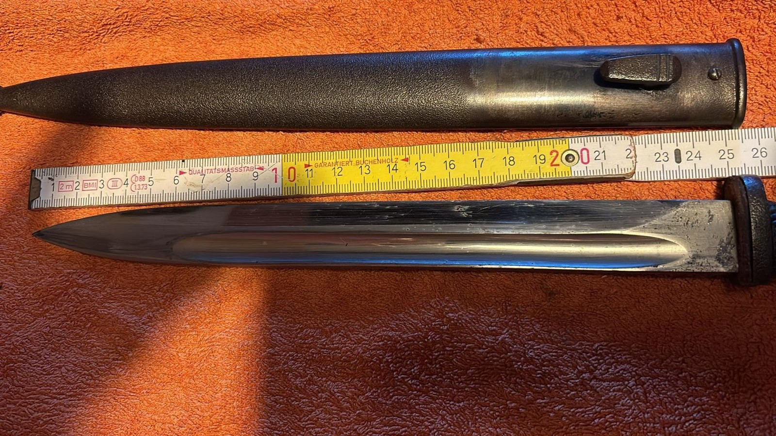 Dies alte Ausgehbajonett mit Scheide hing jahrzehntelang im Treppenhaus.