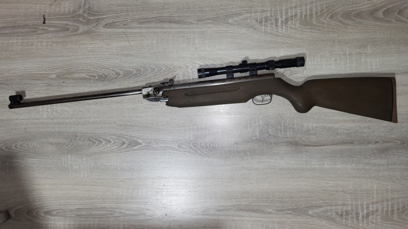 Verkauft wird ein grundsätzlich gut erhaltenes Luftgewehr Weihrauch HW35. Die Brünierung ist sichtbar abgegriffen, der Schaft ist in einem sehr schönen Zustand. Die Farbe ist Eiche dunkel mit schöner Maserung.Das Gewehr hat die original Visierung, wobei das Mikrometer Visier etwas an der Seite abgebrochen ist, aber es lässt sich noch problemlos nutzen. Aber bevor jemand meckert, sage ich mal, das könnte man erneuern, wenn man es braucht. Das Gewehr hat zusätzlich ein Tasco 3-7x20 Zielfernrohr. Es ist auf etwa 7 Meter eingeschossen und das Gewehr schießt damit echt super. Der Druck ist top, die Laufdichtung ist nagelneu. Das Gewehr hat das f im Fünfeck