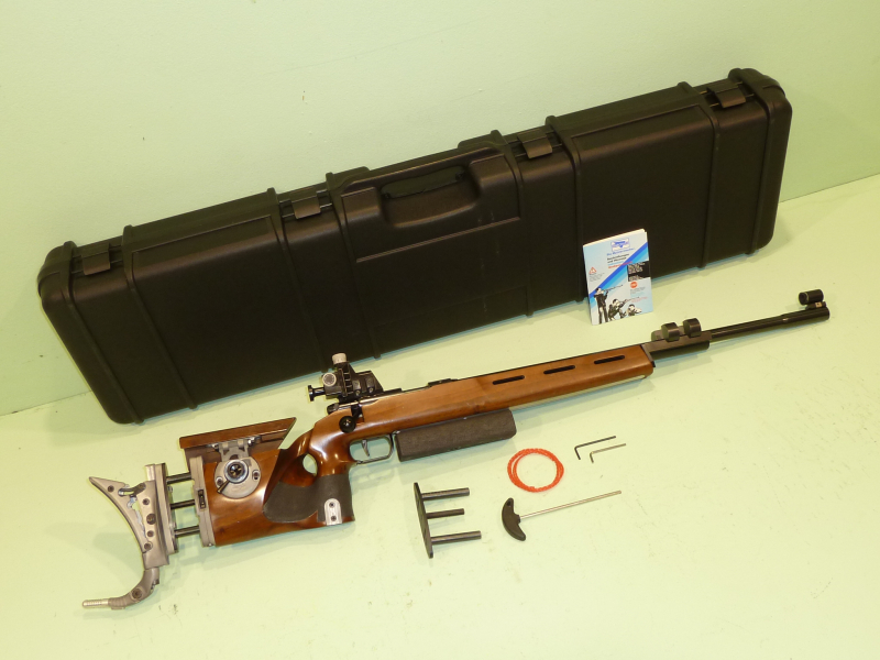 Abgabe des KK-Gewehrs wie auf Bildern mit zweiten Ausleger für eine weitere Hakenkappe, Sicherheitsschnur, Inbusschlüssel und Gewehrkoffer.