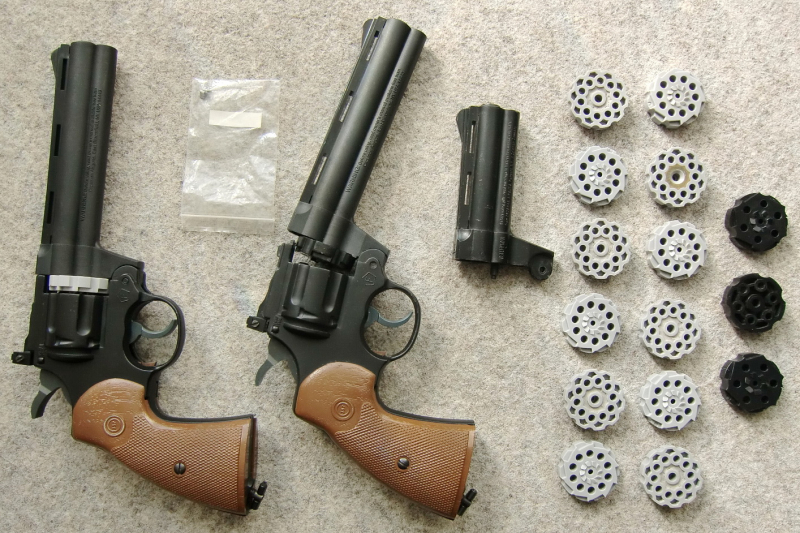 Wuchtige CO2-Revolver incl. umfangreichem Zubehör. Hier ab 1,-EUR Startgebot!
