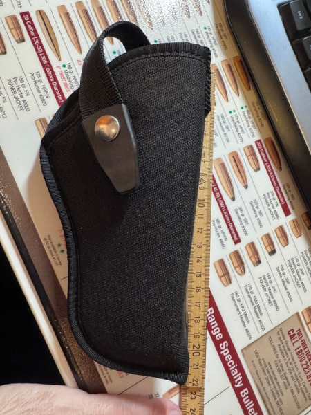 Zum Verkauf steht ein neuwertiges Canvas-Holster der Marke Kettner in schwarzer Ausführung. Das Holster ist robust verarbeitet und verfügt über einen praktischen Druckknopf-Verschluss zur sicheren Fixierung. Ideal für die sichere Aufbewahrung und den Transport kompakter Pistolen (unter Beachtung der gesetzlichen Bestimmungen).