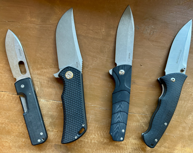Zum Verkauf stehen vier Klappmesser aus dem Hause Böker: