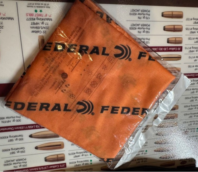 Zum Verkauf steht ein originales Halstuch der Marke Federal in auffälliger Leuchtfarbe Orange. Das Halstuch ist neu und originalverpackt (OVP). Ideal für Jagd, Schießstand oder andere Outdoor-Aktivitäten, bei denen gute Sichtbarkeit und Sicherheit wichtig sind.