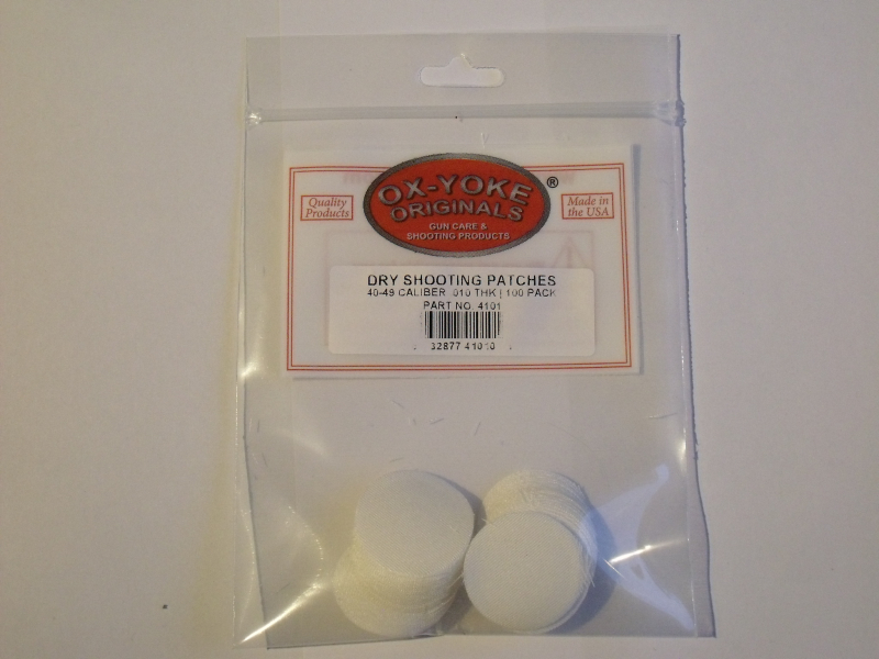 Angeboten werden 100 Schusspflaster von "Ox - Yoke" für .40 - .49 cal. Die Pflaster sind aus ausgesuchten Stoffen, die zu 100% aus Baumwolle gefertigt sind.Sie haben einen Durchmesser von ca. 28 mm und sind in den folgenden Stärken erhältlich: