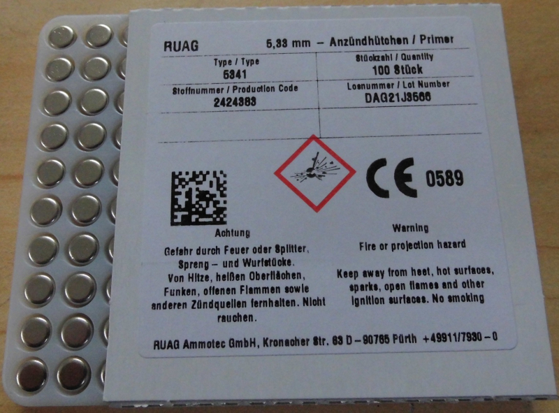 Hallo - biete hier 1000 Stück Zündhütchen von RUAG LR 5341