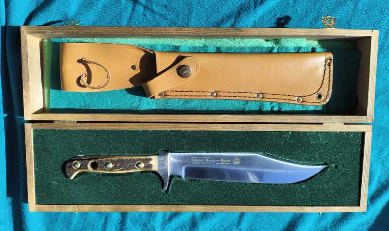 Original PUMA Bowie mit Scheide und Holzkassette.