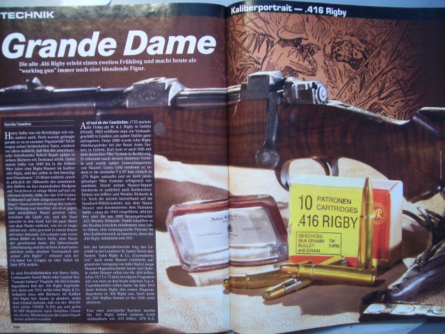 Für Westernschützen - Großwildjäger und Gewehrschützen +++ angeboten wird ein älteres Visier - Heft/SWM-Teil; mit einem sicher sehr interessanten und sicher sehr seltenen Bericht -- ** Grande Dame -- Die Patrone im Kaliber .416 Rigby ** -- Renaissance eines Klassikers - Die alte .416 Rigby erlebt einen zweiten Frühling und macht heute als "working gun" immer noch eine blendende Figur. Warum die 1911 von der Firma Rigby entwickelte Patrone diesen Ruf genießt, können in dem interessanten Bericht nachlesen. Es ist ein Bericht (6 Seiten) mit Leistungsdaten der Patrone .416 Rigby im Überblick -- Fabriklaborierungen und Handlaborierungen mit verschiedenen Geschossen/Pulver. +++ und es gibt noch weitere interessante Berichte -- z.B. ein Bericht (6 Seiten) für Waffenfreunde und Western Gewehrschützen ++ ** Unterhebel-Repetierer im Kaliber .50-95 und .38-40 ** -- Es gibt neue Repliken: die Winchester M 1873 und M 1876 in .38-40 und .50-95. Einmal lang - einmal kurz -- Die Patronen zeigen schon, daß sich die beiden Lever-Action-Büchsen in einen Detail unterscheiden. Alles weitere können Sie in dem interessanten Bericht nachlesen -- mit Angaben zu unterschiedlichen Handlaborierungen für beide Kaliber. +++ und es gibt noch weitere interessante Berichte - auch im SWM Teil +++ Das Heft ist gebraucht - hat sehr leichte Gebrauchsspuren am Deckblatt und 1. Seite (mit Tesa geklebt) - befindet sich aber sonst in einem sehr guten Zustand. +++ Der Versand erfolgt als Großbrief mit DHL (unversichert) ; die Versandkosten gelten nur für Deutschland.+++ Bieter aus dem Ausland bitte Versandkosten vor Gebot erfragen. +++ Versandrabatt möglich, sehen Sie auch meine anderen Angebote. +++ Privatverkauf, daher keine Gewährleistung, Garantie oder Rücknahme. 801 +++ Fragen bitte mailen.
