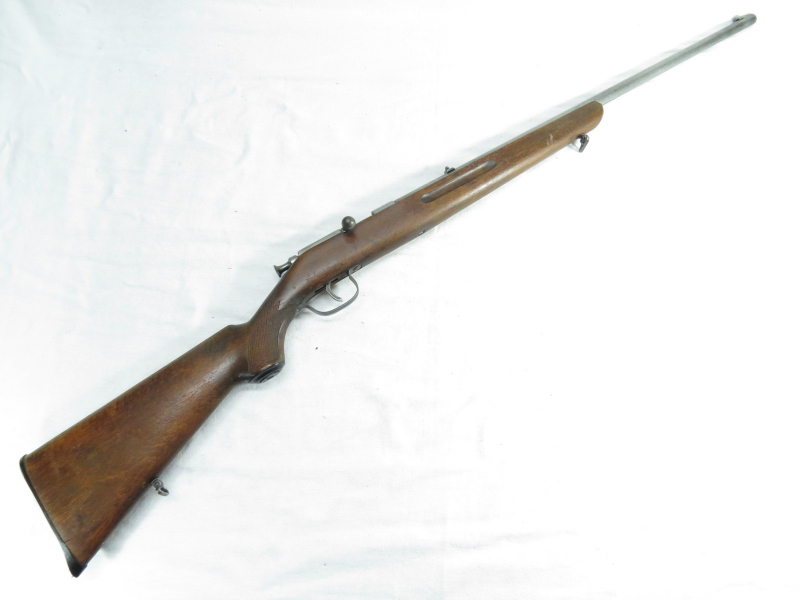 Einzelladerbüchse Alfa - Linert Föhrenbach - Kal. - 22Lr. Lauf blank. Stärker gebrauchter Zustand mit Gebrauchsspuren, siehe Bilder. Verkauf nur an EWB.