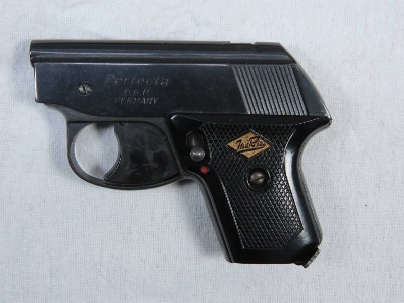 Schreckschusspistole Perfecta Mod. G- Kal 6mm. Nachkriegs-Schreckschuss / Gaspistole ohne PTB Erwerbscheinpflichtig. Gebrauchter Zustand mit Gebrauchsspuren und Zubehör siehe Bilder. Verkauf nur an EWB.