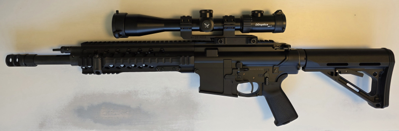 Burk BR10, Kal. 308, verstellbare Gasentnahme für Schalldämpfer, ERATAC Montage mit 20MOA Vorneigung, Zielfernrohr DDoptics 2,5-16x42 mit Leuchtabsehen, automatischer Abschaltung und Parallaxenausgleich, Rusanadapter für Wärmebild oder Nachtsichtgerät, Hausken Schalldämpfer.
