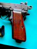 Originale Walnussholz-Griffschalen. Browning-Markierungen klar und sauber.