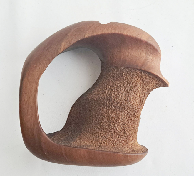 Zur Versteigerung kommt hier ein gebrauchter Original Nill Handschuhgriff, passend für die Sportpistole Walther OSP. (Olympische Schnellfeuer Pistole)