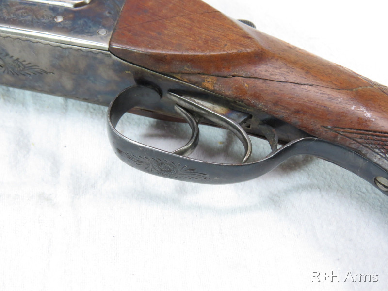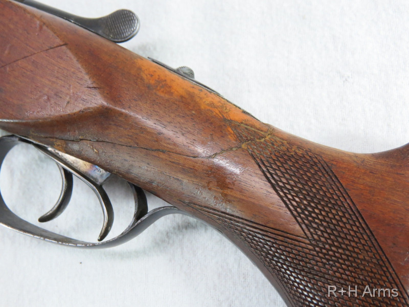 Doppelflinte Armas Spanien - 12/70. Lauf sehr gut blank. Gebrauchter Zustand mit Gebrauchsspuren, Schaft bearbeitet mit geklebtem Riss am Hals, siehe Bilder. Verkauf als Bastelware ohne Garantie und Rücknahme nur an EWB.