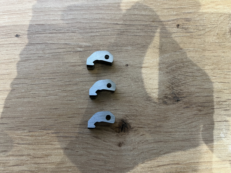 Zum Angebot stehen insgesamt drei Abzugsklinken / Fanklinken / Sear (je nachdem, welchen Namen man verwenden möchte).