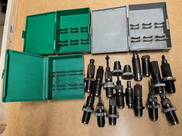 Wiederlade Matrizen Fundgrube, 20-teilig, über 3 Kg, verschiedene Kaliber, 9mm Para, 44 Mag, 7x57, 8x57, 222, 6,5x55. Vorwiegend RCBS. Kein Satz vollständig. Gebrauchter Zustand.