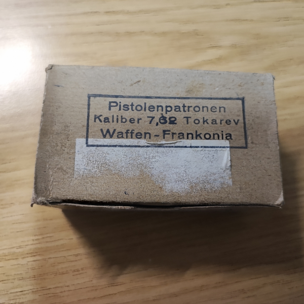 200 Schuß Munition 7,62X25 Tokarev: 5 Schachteln a 40 Schuß auf Ladestreifen....Aufdruck Frankonia; allerdings sehe ich kein CIP;