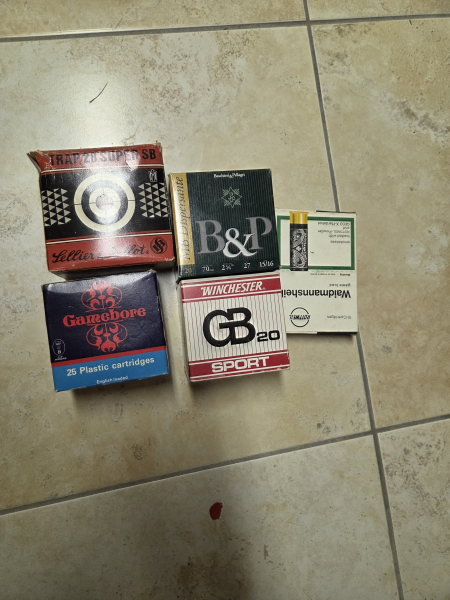 Biete aus einem Nachlass ein Konvolut mit 117 Jagd und Sport-Schrotpatronen in Kaliber 20. In den S&B Schachtel was nicht original ist, sind Patronen von RWS, Eley und andere. In den Schachtel von Gamebore sind Patronen von Fiocchi.