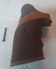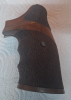 Karl Nil Holzgriff Nussbaumholz Griffschalen für Smith & Wesson Revolver mit N-Rahmen round butt. Die Griffschalen haben (jede) im oberen Bereich einen Riss, der auf der Innenseite mit Sekundenkleber augegossen wurde ( rote Markierungen auf einem der Bilder). Außen im Daumenbereich wurde jeweils ein Stück Skateboardtape aufgeklebt.