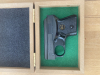 Die Funktion ist einwandfrei, die Waffe wird mit einer Holzschachtel, orig. Bedienungsanleitung,