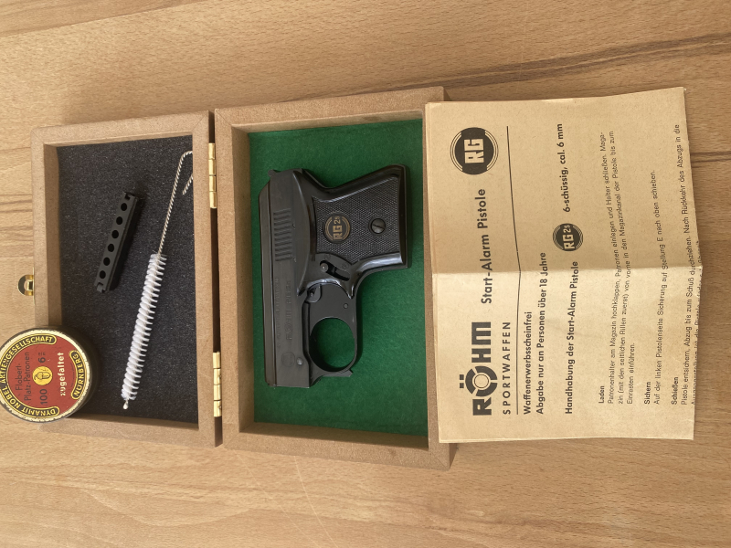 Es handelt sich um eine Röhm RG 2S Start -Alarm Pistole, cal.6 mm Flobert Platz -Patronen.