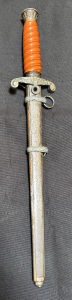Ich versteigere hier einen Heeresoffiziersdolch. Den weiteren Zustand entnehmen Sie bitte den Foto´s. Der Dolch ist nicht mehr scharf und die Spitze nicht mehr vorhanden, Rostnarben sind auf den Dolch und der Scheide vorhanden. Der Stempel ist leider nicht mehr lesbar. Für Rückfragen stehe ich natürlich gerne zur Verfügung.
