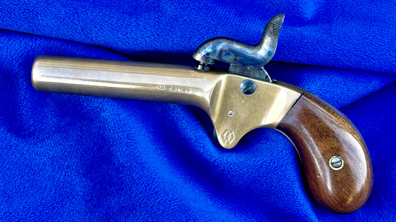 Ich biete hier einen schönen kleinen Derringer an. Diese elegante Waffe ist seit Jahren nicht mehr im Handel erhältlich und hat eine dezente Beststempelung unter dem Lauf, die in der Seitenansicht nicht sichtbar ist.