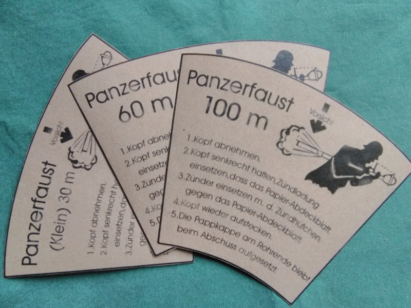 Satz Aufkleber für den Köpfe Panzerfaust 30(Klein),60,100. Etiketten ohne Kleber! Sie erhalten drei ( 3 ) Stück. Versandkosten: Innerhalb der EU: 6.50 Euro Päckchen (unversichert, kein Nachweis!!!). Versichertes Paket 9 euro. (Ich empfehle versicherten Versand!) Für übergroße oder sehr schwere Pakete, bitte die Versandkosten anfragen. Zahlung ist möglich via Paypal und Überweisung . Werden mehrere Artikel ersteigert, fallen nur 1x Versandkosten an. Schauen sie die Bilder bevor bieten an. Bitte stellen sie gern ihre Fragen.