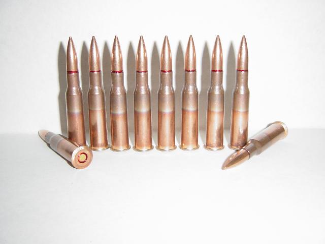Hier bieten Sie auf 10 Dekopatronen im Kaliber 7,62x54R russisch Nagant. Nach dem 2. Weltkrieg hatten viele Ostblockstaaten dieses Kaliber als Standartkaliber. Bei diesen angebotenen Patronen handelt es sich um original Militärmunition. Diese Patronen wurden in der UDSSR gefertigt und haben eine verkupferte Stahlhülse. Bodenstempel 188 77 . Die Geschosse haben einen Eisenkern zur Bleieinsparung. Die Hülsen sind nicht angebohrt. Die Geschosse sitzen fest, die Zündhütchen sind nicht abgeschlagen aber zündunfähig gemacht. Die Dekopatronen enthalten keine erlaubnispflichtigen Stoffe. Die Patronen nicht als EX Patronen verwenden, da einige Zündhütchen noch etwas Energie haben können. Deshalb können diese Patronen von jederman ohne Berechtigung erworben werden. Bitte Beachten Sie meine anderen Auktionen, oder fordern Sie meine Liste an. Der Versand erfolgt auf eigene Gefahr oder per Einschreiben(Mehrkosten 2,35 Euro).