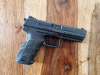 11,3 cm Polygonlauf , verstellbares Visier. Beidseitiger Schlittenfang, Entspanntaste, unterschiedliche Griffrücken und verschieden dicke Griffseitenplatten zur individuellen Handanpassung. Profizeug halt.